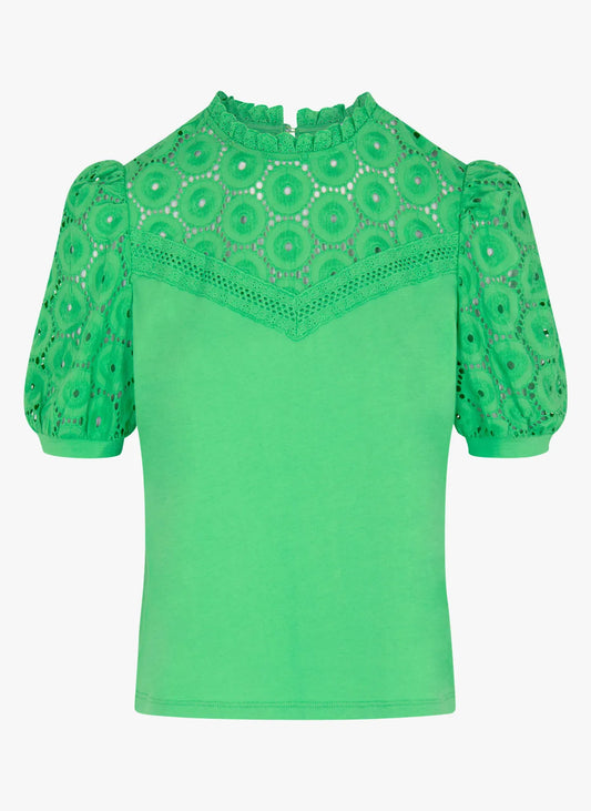 DULIE - Top a collo alto ricamato in cotone | Verde