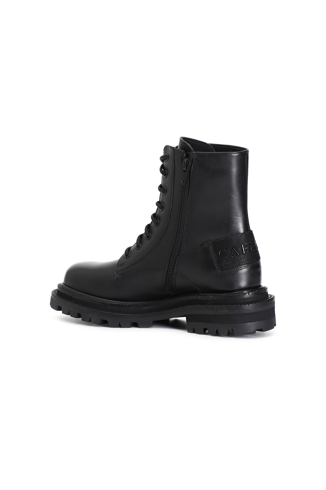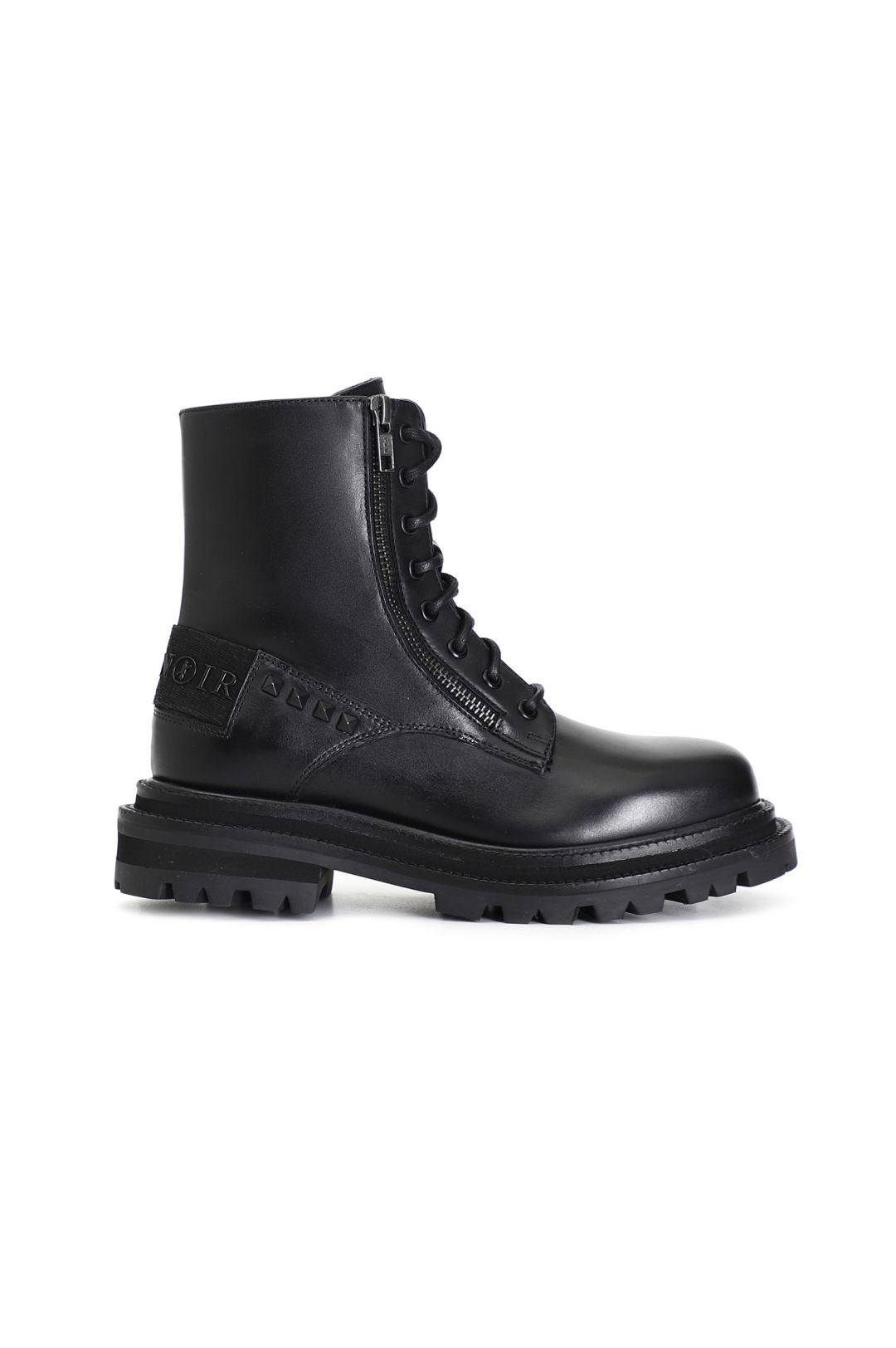 Tronchetto donna allacciato in pelle arricchito sia da una cerniera in metallo da borchie e da un particolare nastro logato cafènoir. il soletto è in pelle